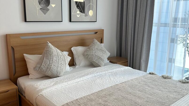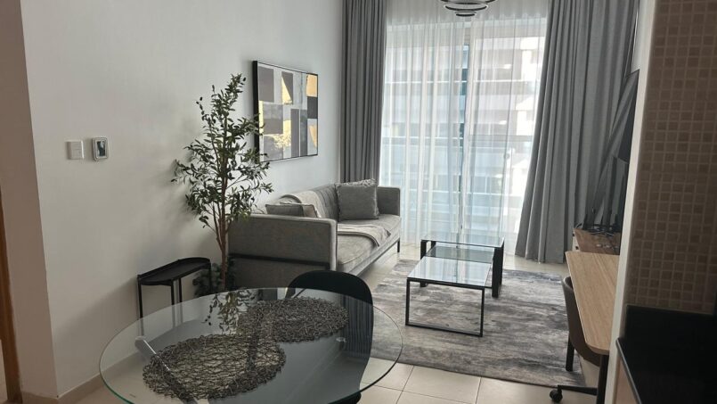 Welcome luxury living in the heart of Dubai’s vibrant Business Bay at Mayfair Tower. This fully furnished 1-bedroom apartment offers an unparalleled urban lifestyle with stunning views and premium amenities. Situated in a prime location, this 803.96 sqft apartment boasts a spacious layout with high-end furnishings. The bedroom features a luxurious king-size bed, while the living area is equipped with a comfortable sofa, TV, and dining set. The fully equipped kitchen caters to all your culinary needs, and the stylish bathroom adds a touch of elegance.
